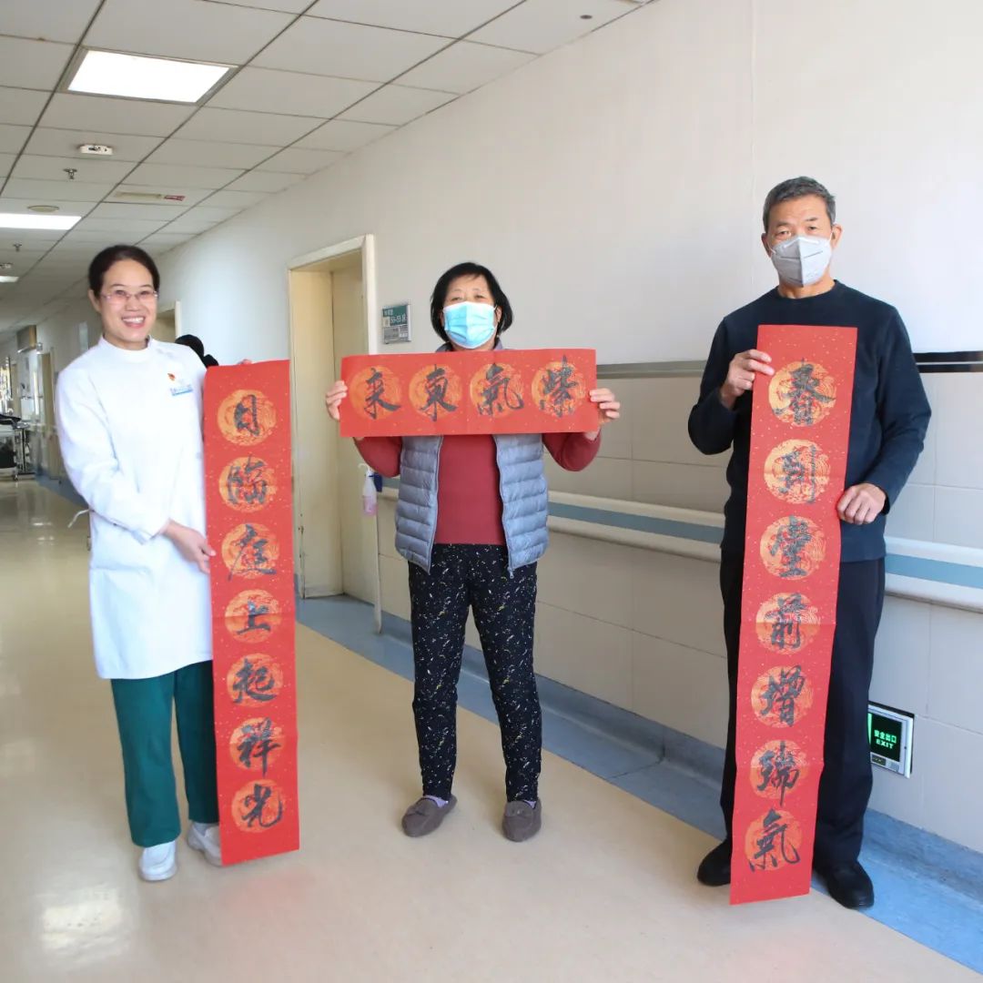 临床病区护士长为患者送春联、送“福”字,祝愿患者朋友龙年吉祥、平安健康。